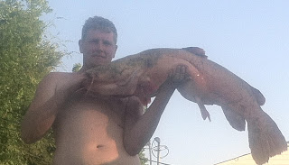 I'm usually the one sitting in the lawn chair with a book...swatting at the mosquitos and wishing I were back home. Which is probably why I don't do much fishing! This past weekend, my daughter, her boyfriend, his family, and Aidan went fishing....and this is one of the fish that they brought home. Several catfish filets will come from this one for sure.